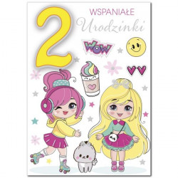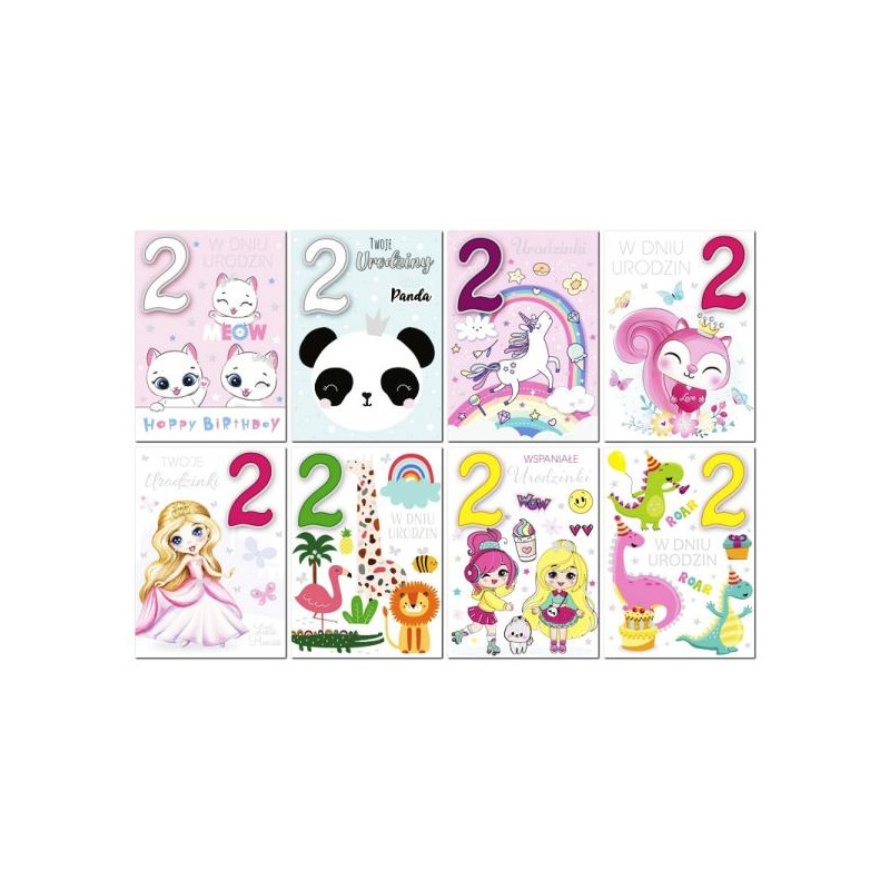POLMAK - Karnet B6GE - 2 urodziny - Zestaw 766 - dziewczynka, cyfra 2